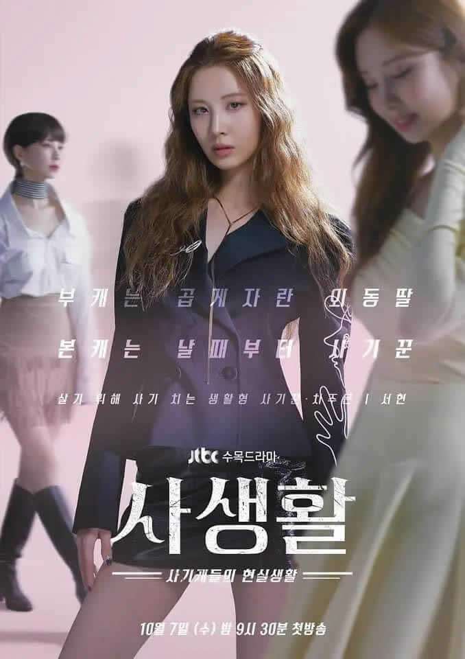 《私生活》是韩国JTBC电视台于2020年下半年首播的电视剧,由徐贤、高庚杓、金永敏、金孝珍等主演。该剧讲述生活型骗子不经意介入了国家级“隐私(私生活)”,为了能生存下去而施展各种骗术和像歌利亚(注:“歌利亚”是传说中的巨人)一样的大企业展开骗术对决,揭露国家巨大的“私生活”的故事。该剧以经过了时代变迁,为了在韩国生存下去不得不成为骗子的一个家庭的故事开篇,将通过生计型骗子的行骗生活投射出大韩民国普通市民的喜怒哀乐。
